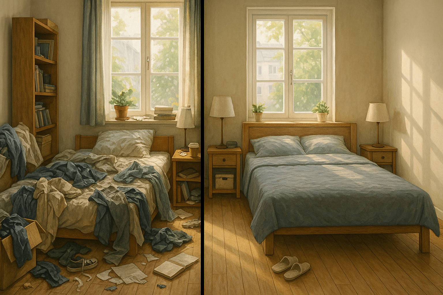 정돈된 공간은 생각보다 강력한 안정 효과를 준다. 어지러운 방은 뇌에 불필요한 자극을 주고, 집중력을 갉아먹는다. 반대로 깨끗한 환경은 뇌의 피로를 줄이고, 마음을 차분하게 만든다.
